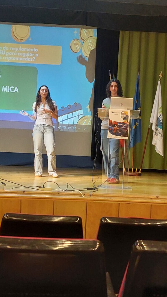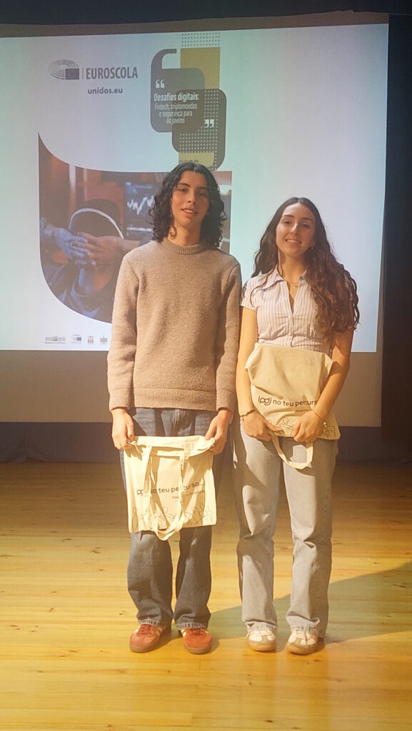 Este ano com o tema “Desafios digitais: fintech, criptomoedas e segurança para os jovens”, a Diana Querido e o Pedro Carmo, brilham em Leiria, na sessão distrital do Euroscola, com um primeiro lugar que lhes dá acesso à sessão nacional, a decorrer nos dias 25 e 26 de maio, na Assembleia da República.